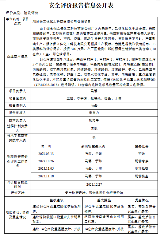 煙臺(tái)保立佳化工科技有限公司倉儲(chǔ)項(xiàng)目