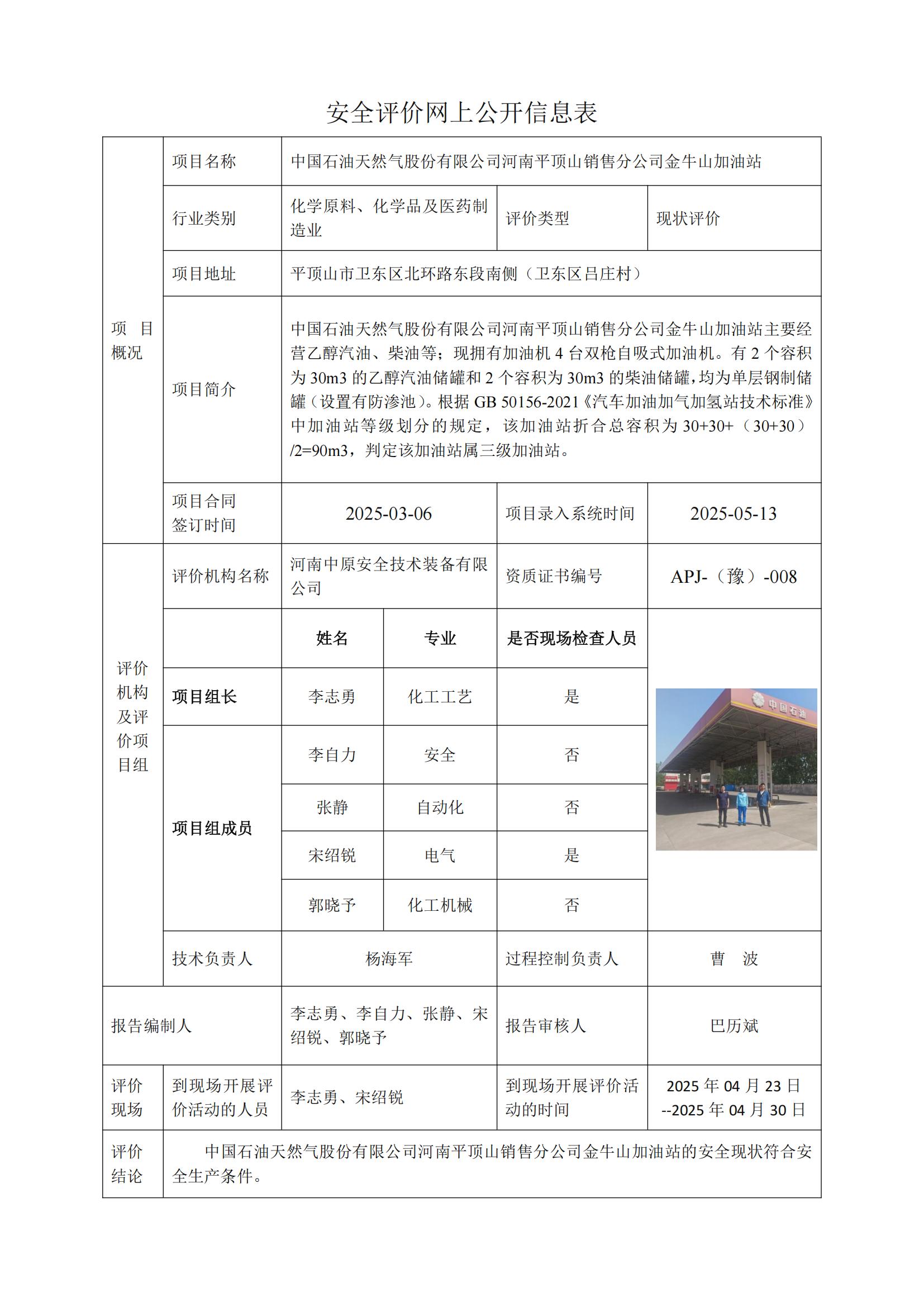 中國石油天然氣股份有限公司河南平頂山銷售分公司金牛山加油站