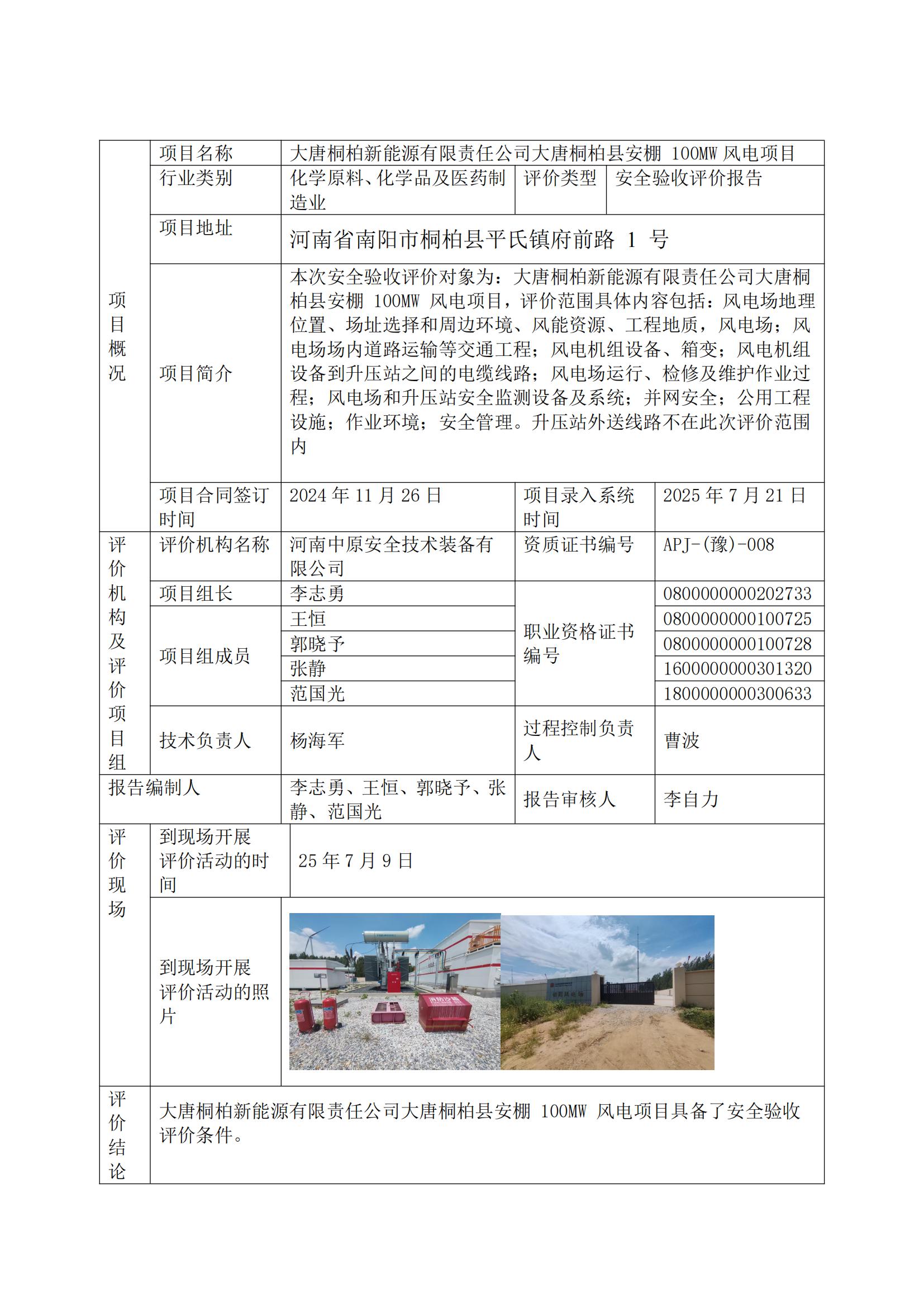 大唐桐柏新能源有限責任公司大唐桐柏縣安棚 100MW 風電項目